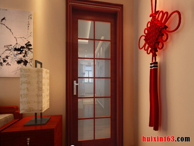 客厅的装饰简单舒适又不缺乏温馨的气氛,白色的顶面装饰加上吊灯的使用瞬间提升空间的奢华和温馨气氛,红色的实木框架的贯穿装饰给人一种古典韵味浓烈的气氛,浅色的沙发和红色的实木家具搭配让中式的古典装修韵味更加的充分展示出来,墙面上三幅古典的风水画的装饰不仅起到装饰空间的作用,侧面烘托出主人的生活品味的提升和对中式艺术的向往追求。隔壁墙面上一个大红色的中国结更是突出了中式装修的特殊展示。