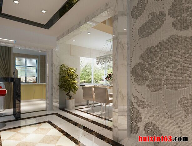 本套房屋装饰主体主要是围绕着现代简约的主题进行装点,简洁的装饰中透露出了沉稳,在装饰的同时也注重了居室的使用性,更加凸显出了现代社会生活的精致与个性,客厅中整体的装饰效果可以带给人们一种非常大气的感觉,石膏板吊顶上并没有过多的造型设计,只是在四周安装了一圈白色的镜面装饰,搭配上中间的吊灯,使其显得更加闪亮,也会使客厅空间显得更加通透明亮一些,一款亮棕色的皮质沙发上搭配了深浅不一的布艺抱枕,在透露着大气的同时,也可以带给人们一份舒适感。